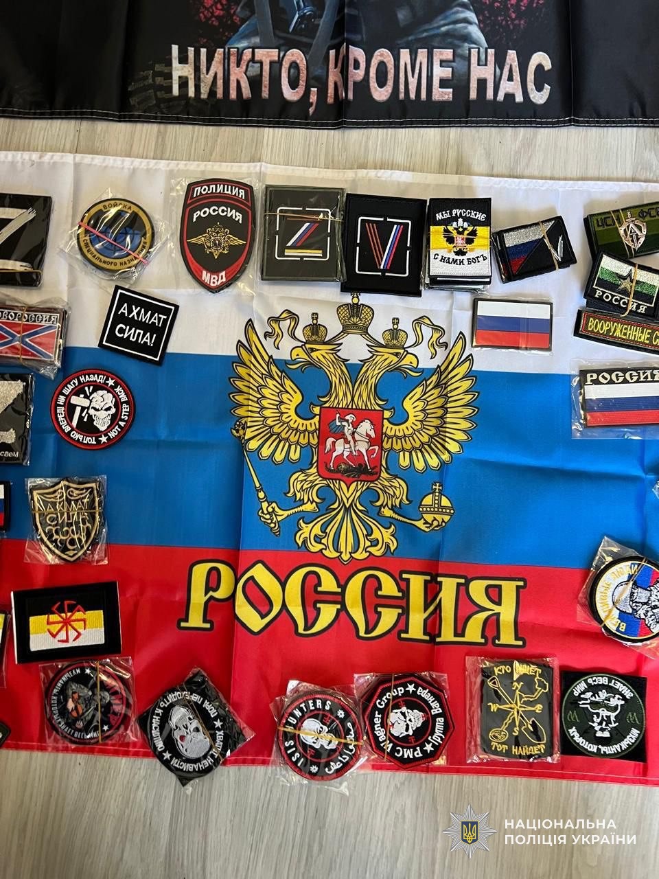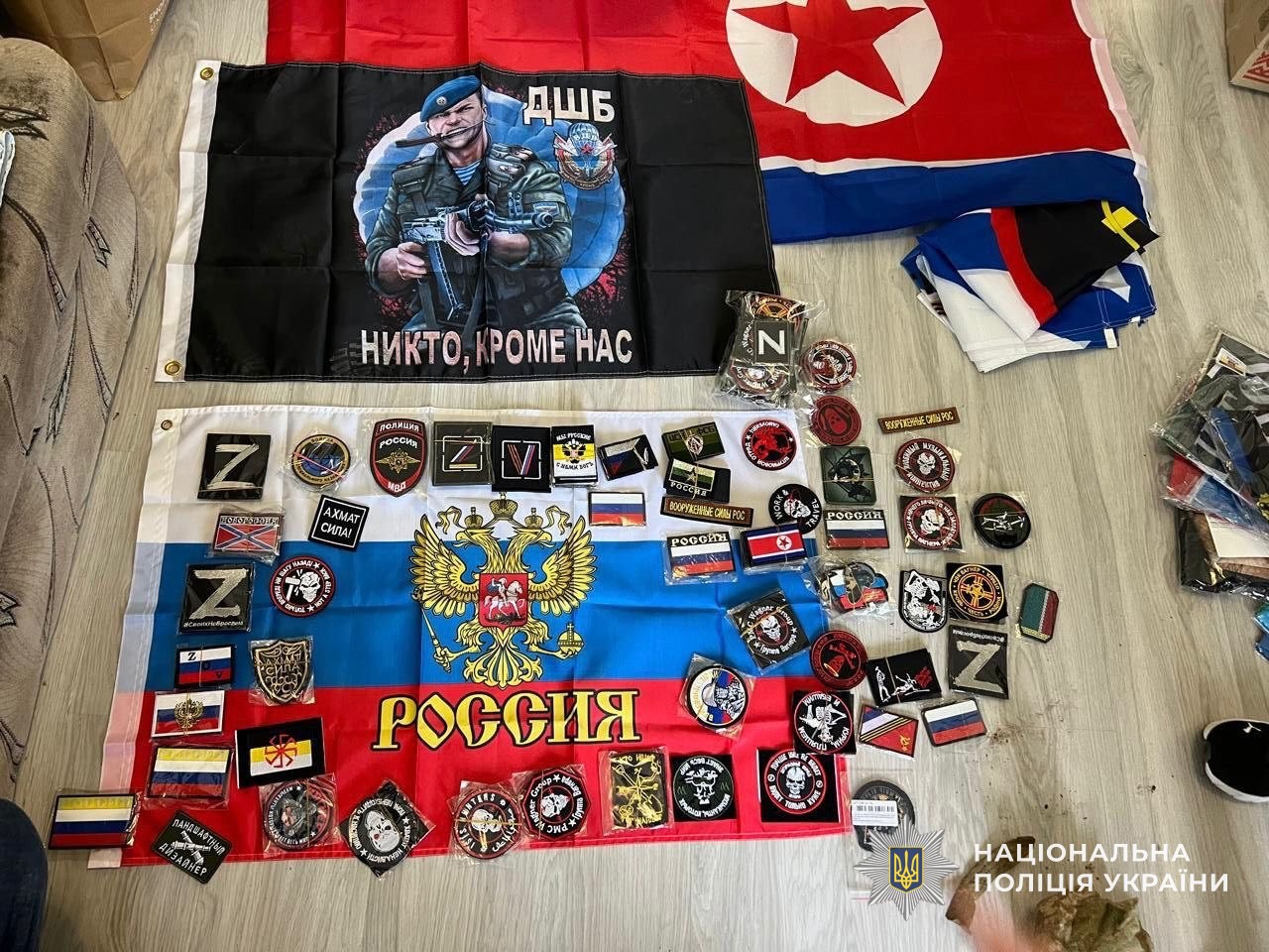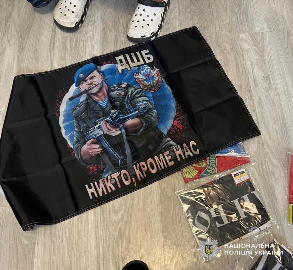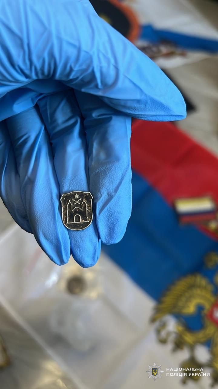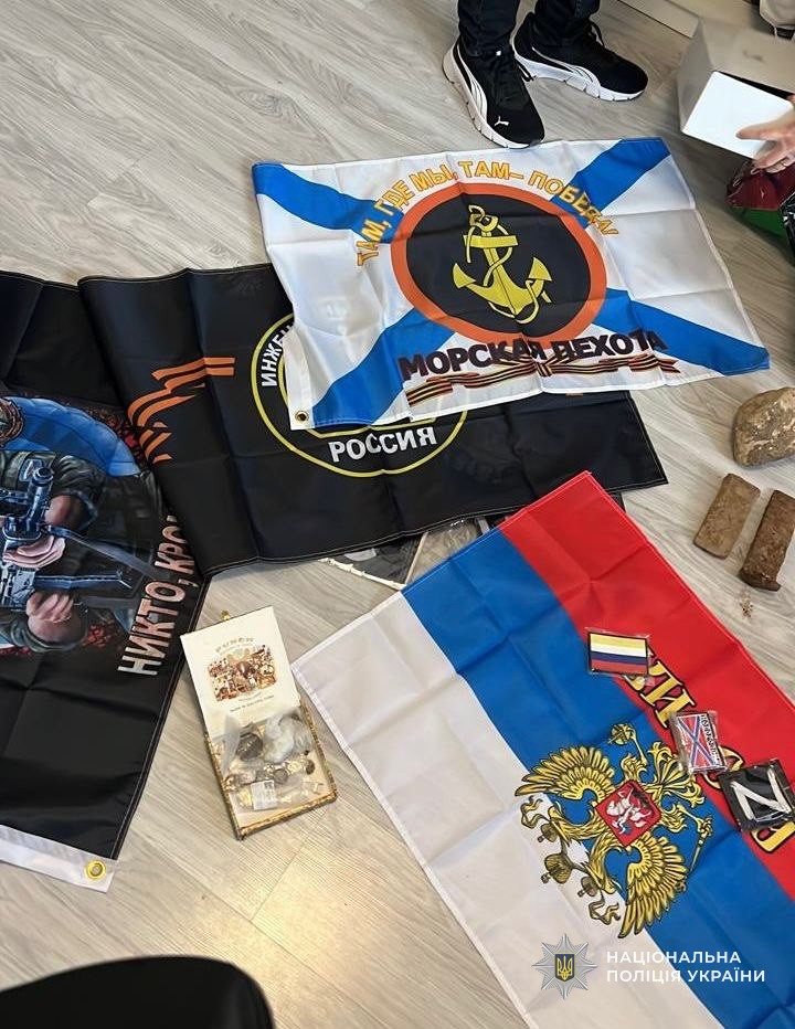 Окрім цього, правоохоронці виявили у зловмисника велику кількість предметів з російською символікою та символікою окупаційного режиму — так званих «лнр», «днр» та «новороссії».