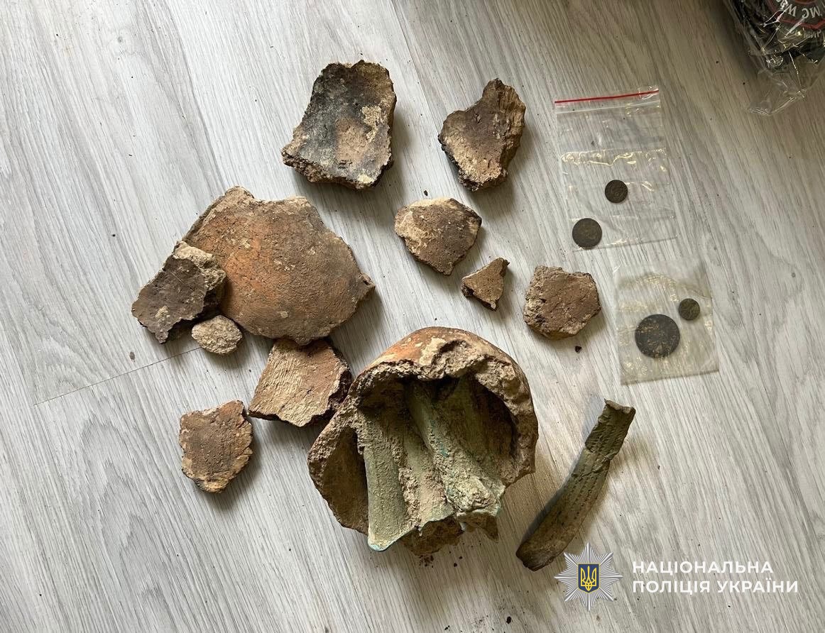 Під час слідчих дій у 42-річного уродженця Сумщини поліцейські виявили предмети з археологічних польових досліджень, фрагменти артефактів та колекційні монети, зокрема й часів Римської Імперії.