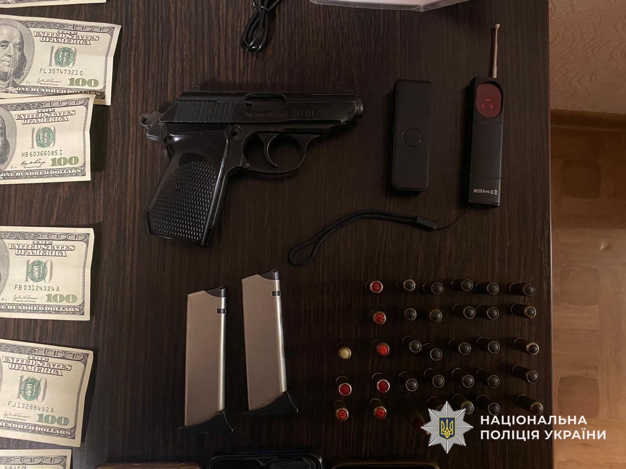 Правоохоронці провели обшуки у Рівненській області та в місті Києві. У їх результаті було вилучено низку речових доказів: гроші в сумі 9 900 доларів, автомобіль «Nissan», 6 мобільних телефонів, травматичний пістолет та набої різного калібру.